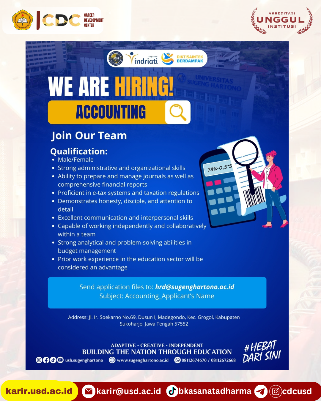 LOWONGAN UNIVERSITAS SUGENG HARTONO