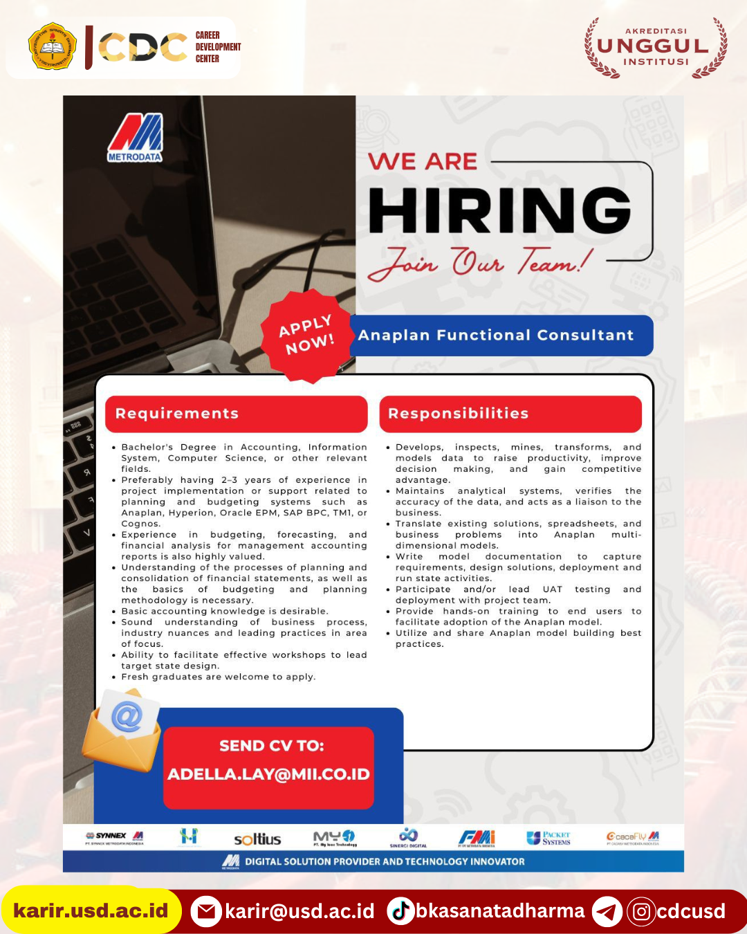 HATI-HATI TERHADAP PENIPUAN LOWONGAN PEKERJAAN ONLINE! Salah satu indikasi PENIPUAN adalah jika pelamar diminta untuk melakukan TRANSFER via ATM atau dimintai uang dengan cara lain. Bila mengetahui indikasi tsb hub: karirdanalumni@usd.ac.id