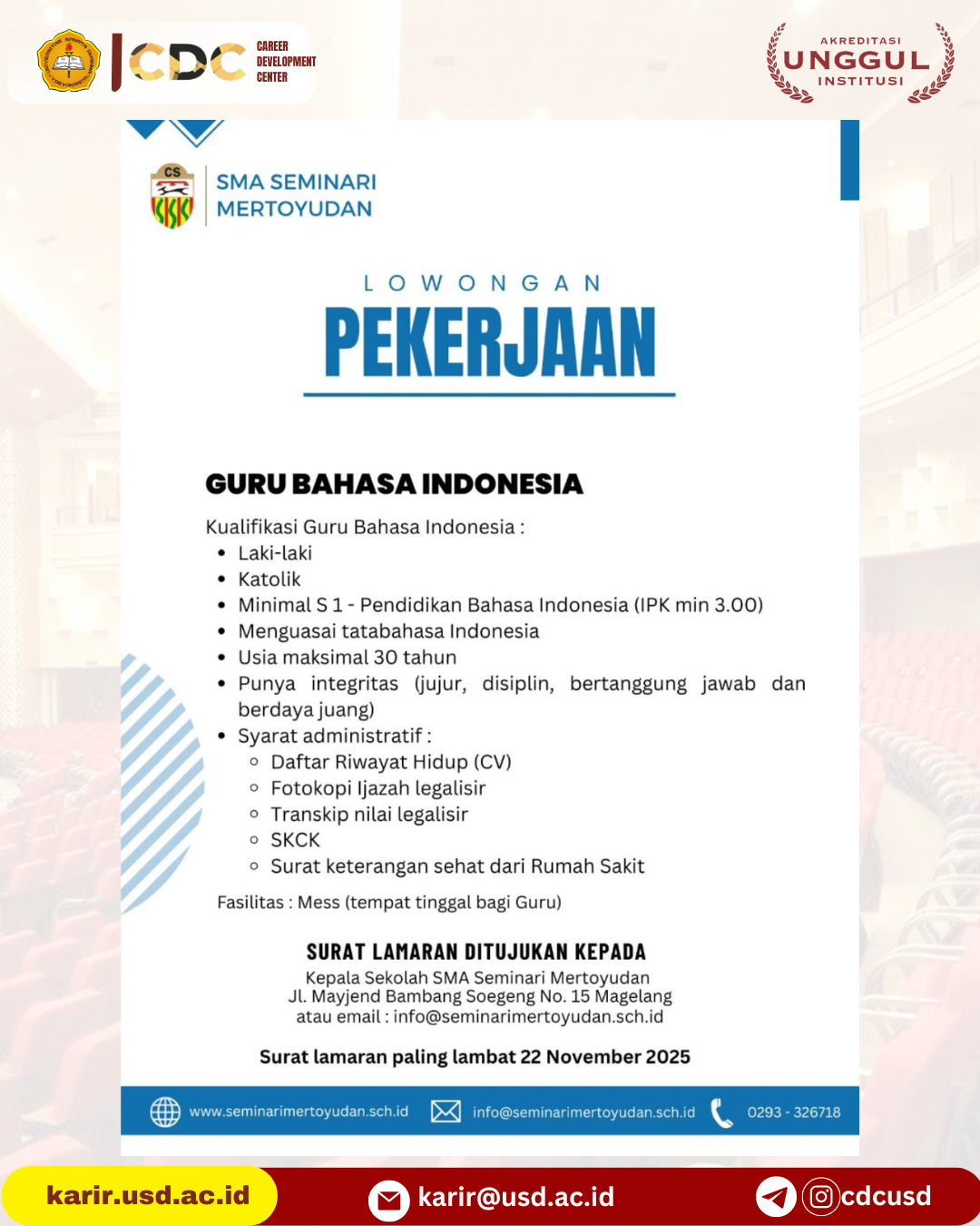 LOWONGAN SMA SEMINARI MERTOYUDAN