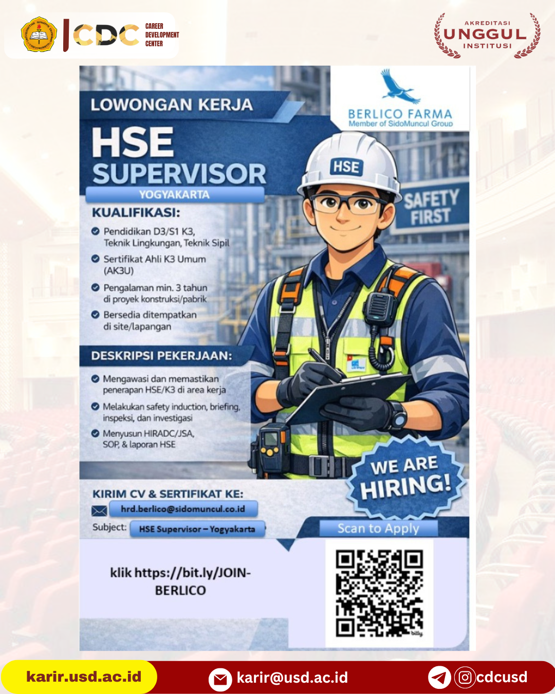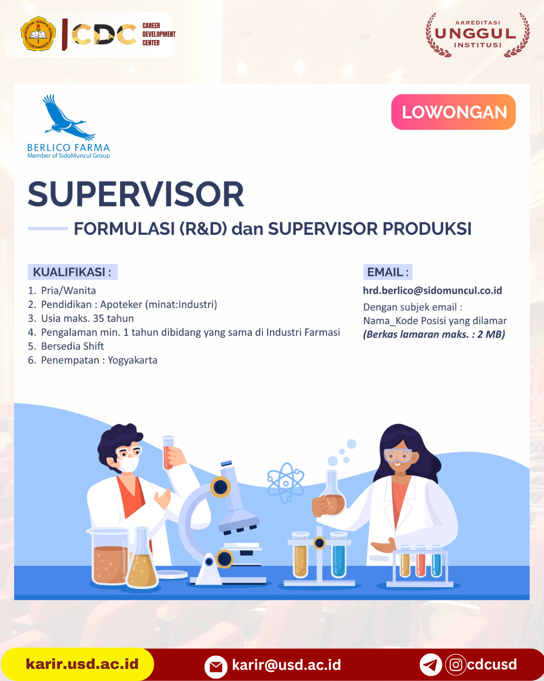 LOWONGAN PT. BERLICO MULIA FARMA Dari : PT. BERLICO MULIA FARMA Deadline : 31/01/2026 Ketegori : Daerah Istimewa Yogyakarta | Kab., Sleman