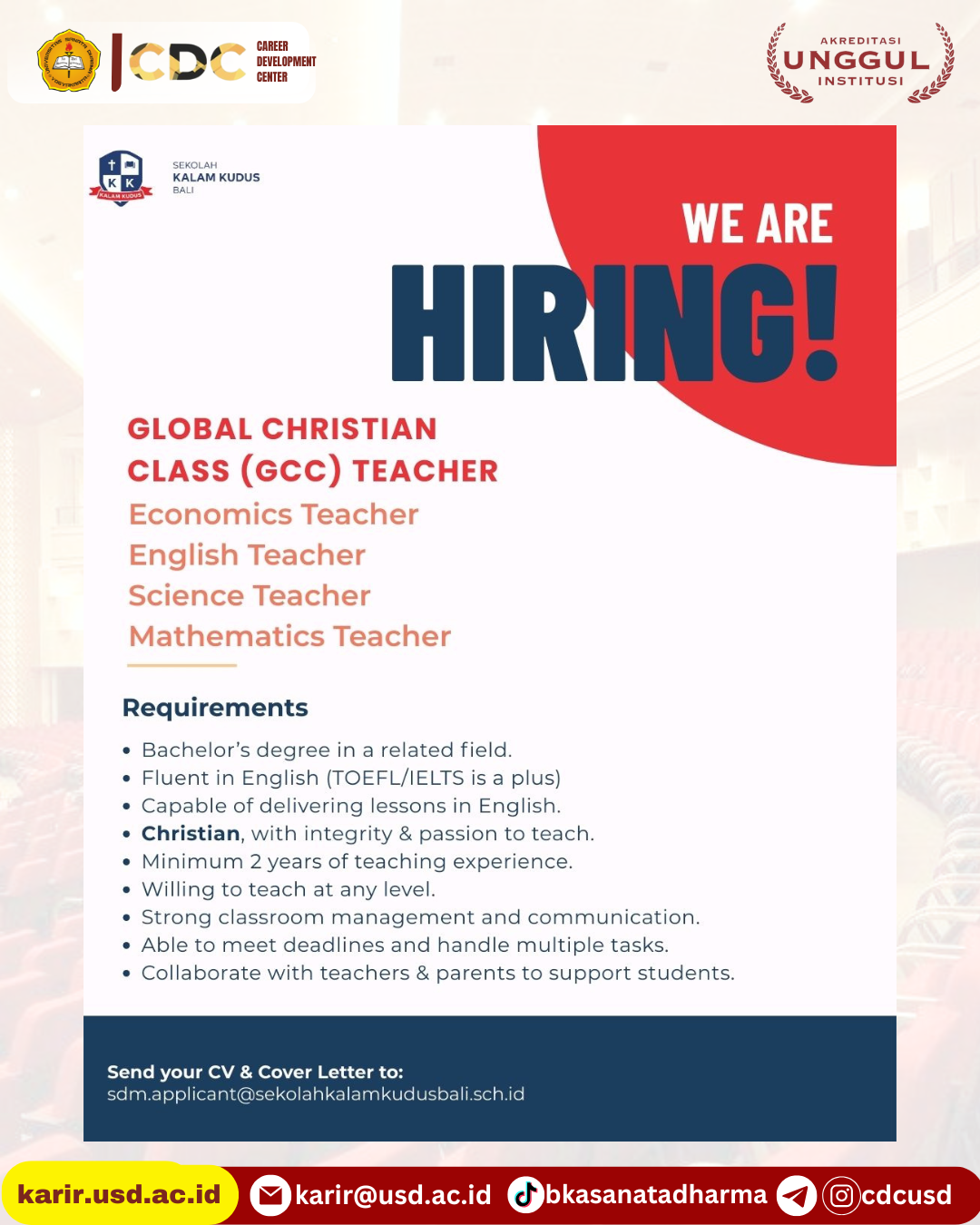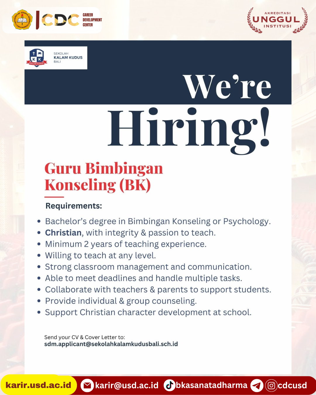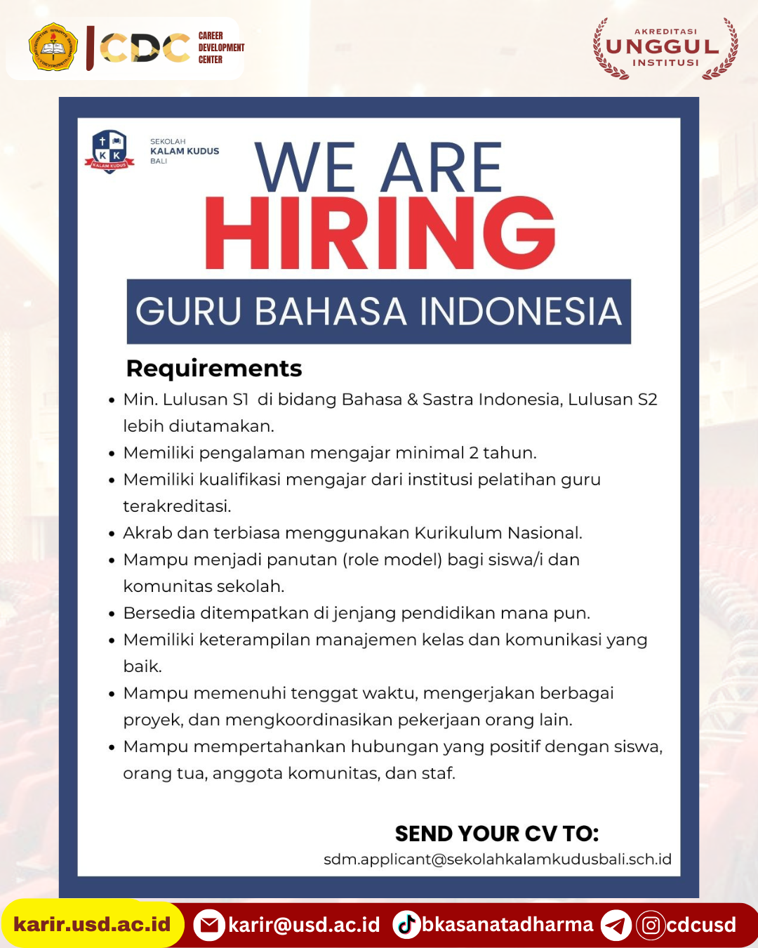 Bila mengetahui indikasi tsb hub: karirdanalumni@usd.ac.id