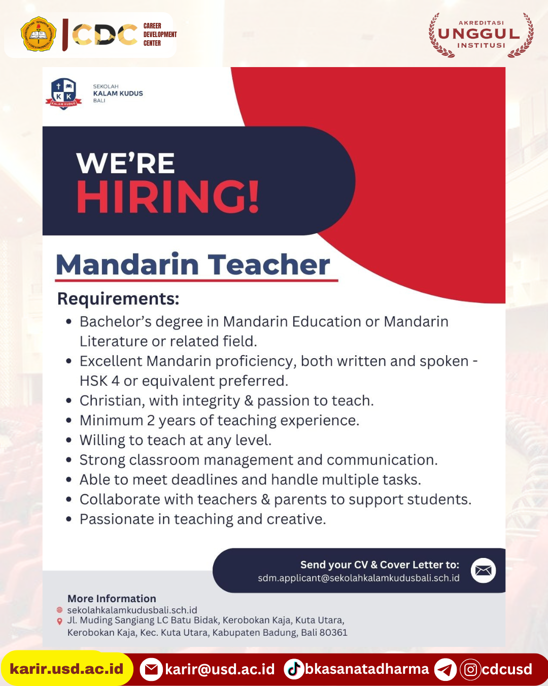 LOWONGAN SEKOLAH KALAM KUDUS BALI