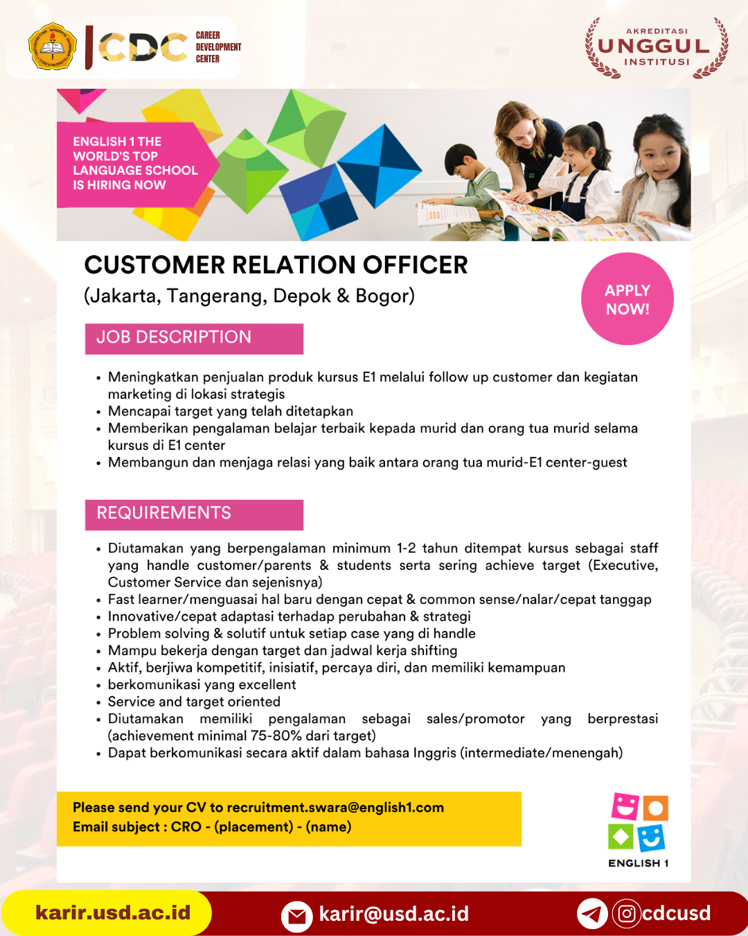 Bila mengetahui indikasi tsb hub: karirdanalumni@usd.ac.id