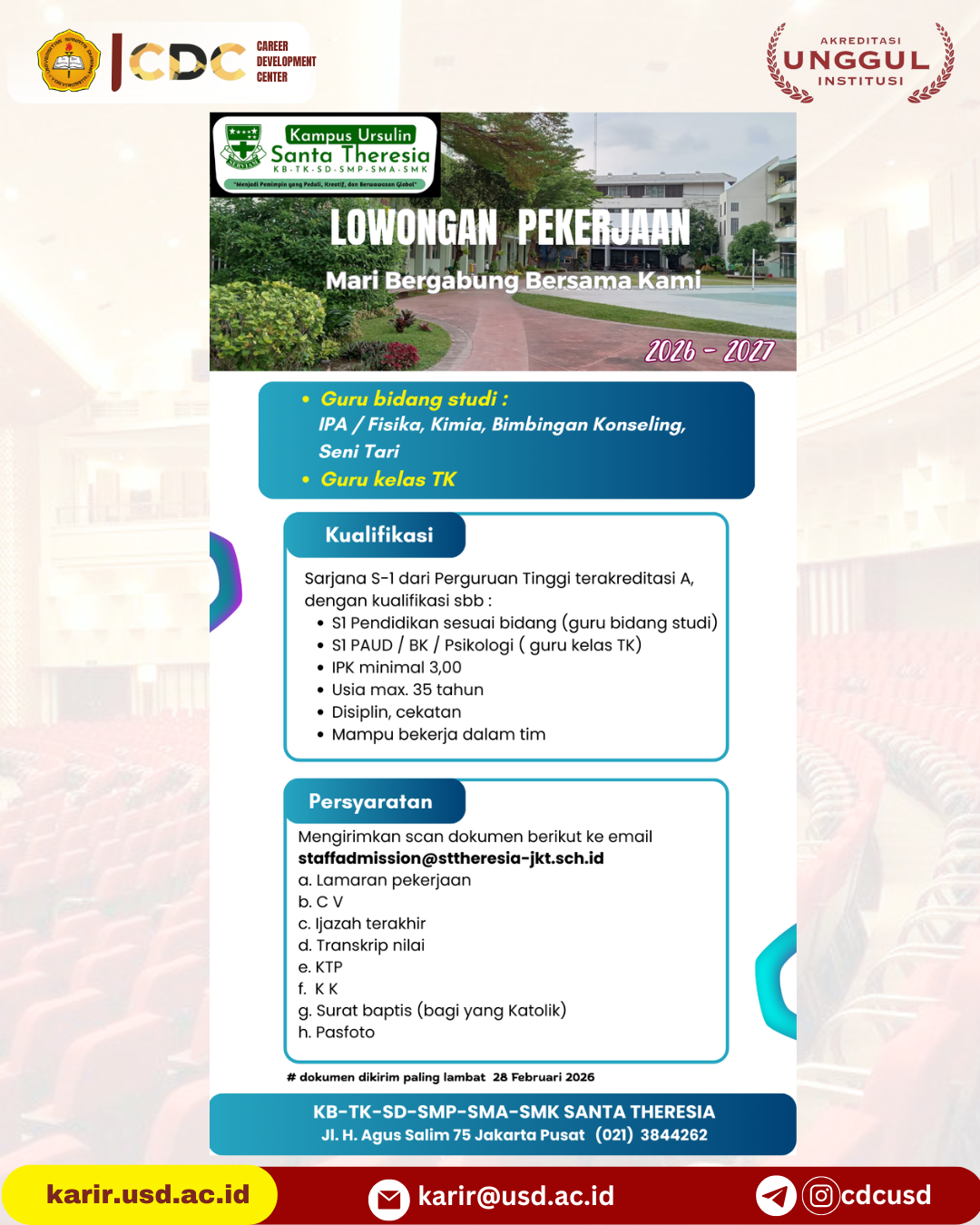 Lowongan Kerja Kampus Ursulin Santa Theresia
