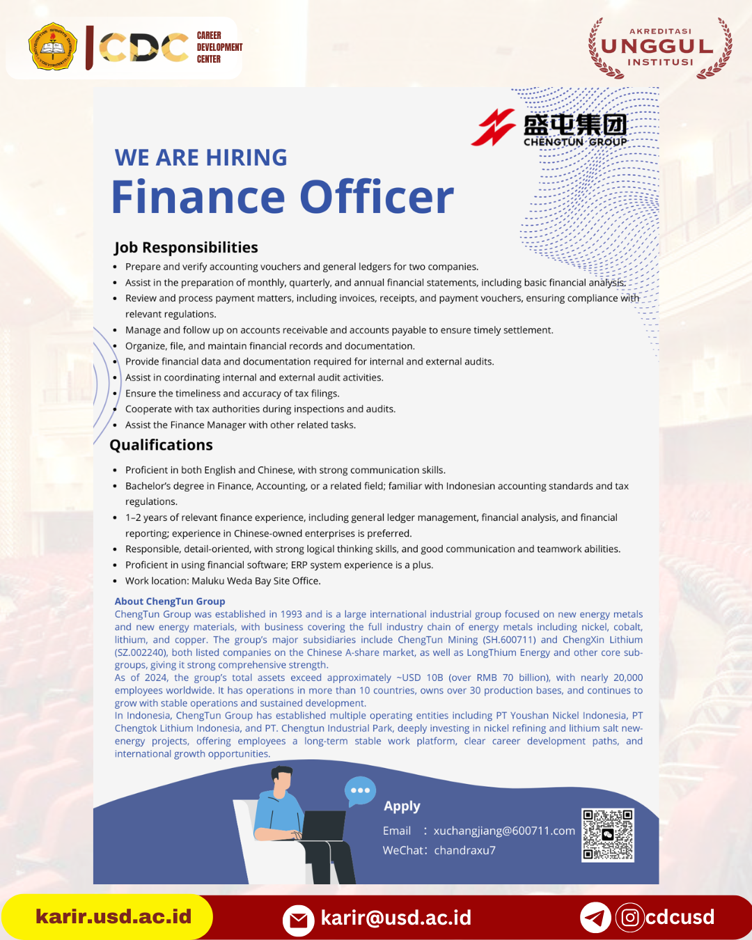 LOWONGAN PT Chengtun Industrial Park (Chengtun Group)
