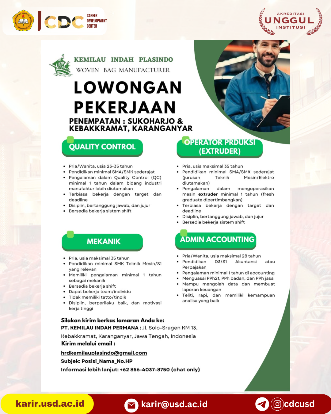 Bila mengetahui indikasi tsb hub: karirdanalumni@usd.ac.id