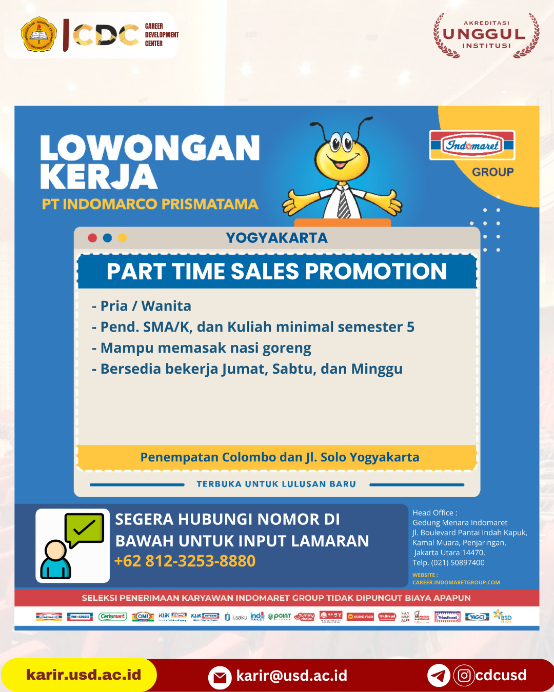 Bila mengetahui indikasi tsb hub: karirdanalumni@usd.ac.id