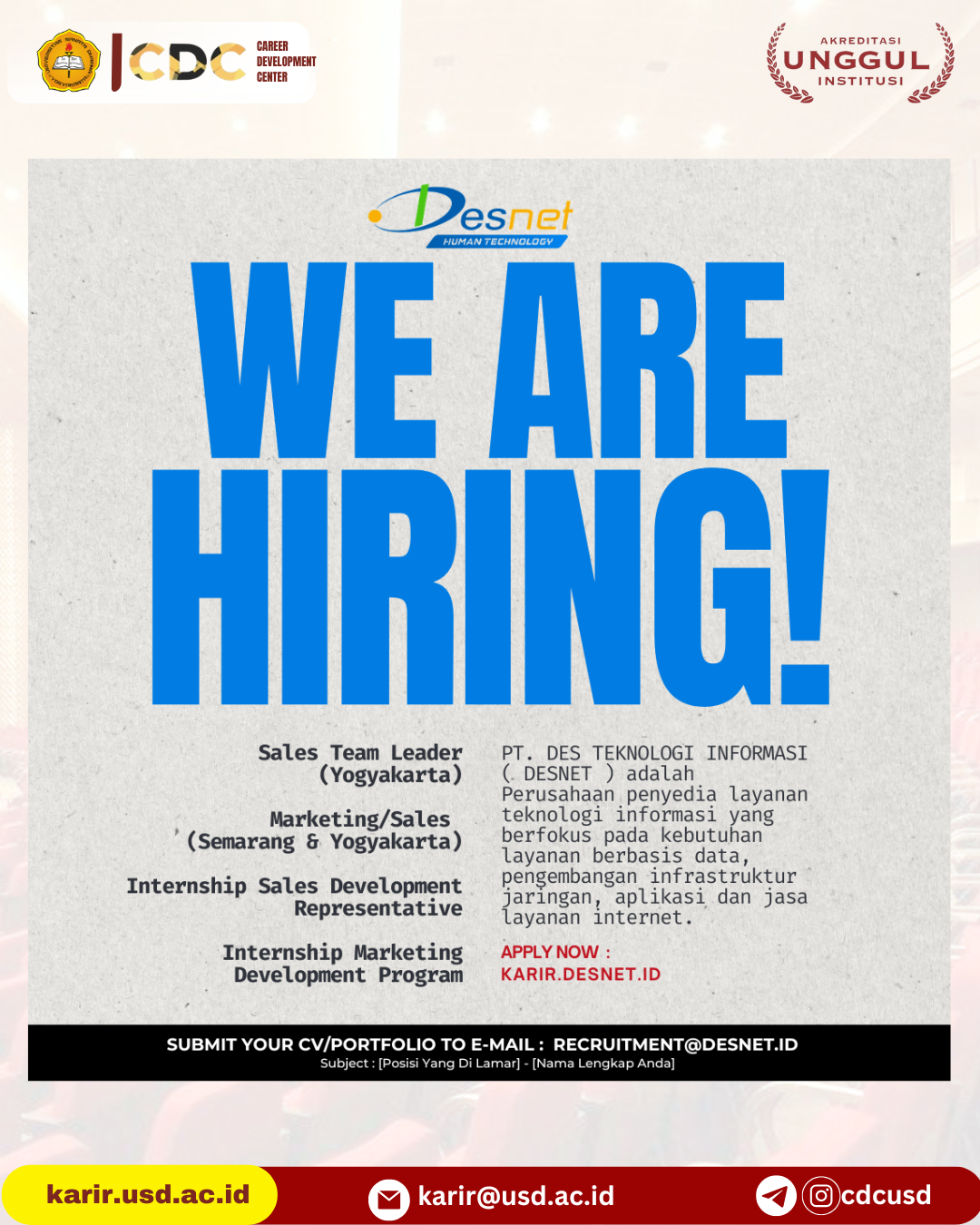 Bila mengetahui indikasi tsb hub: karirdanalumni@usd.ac.id