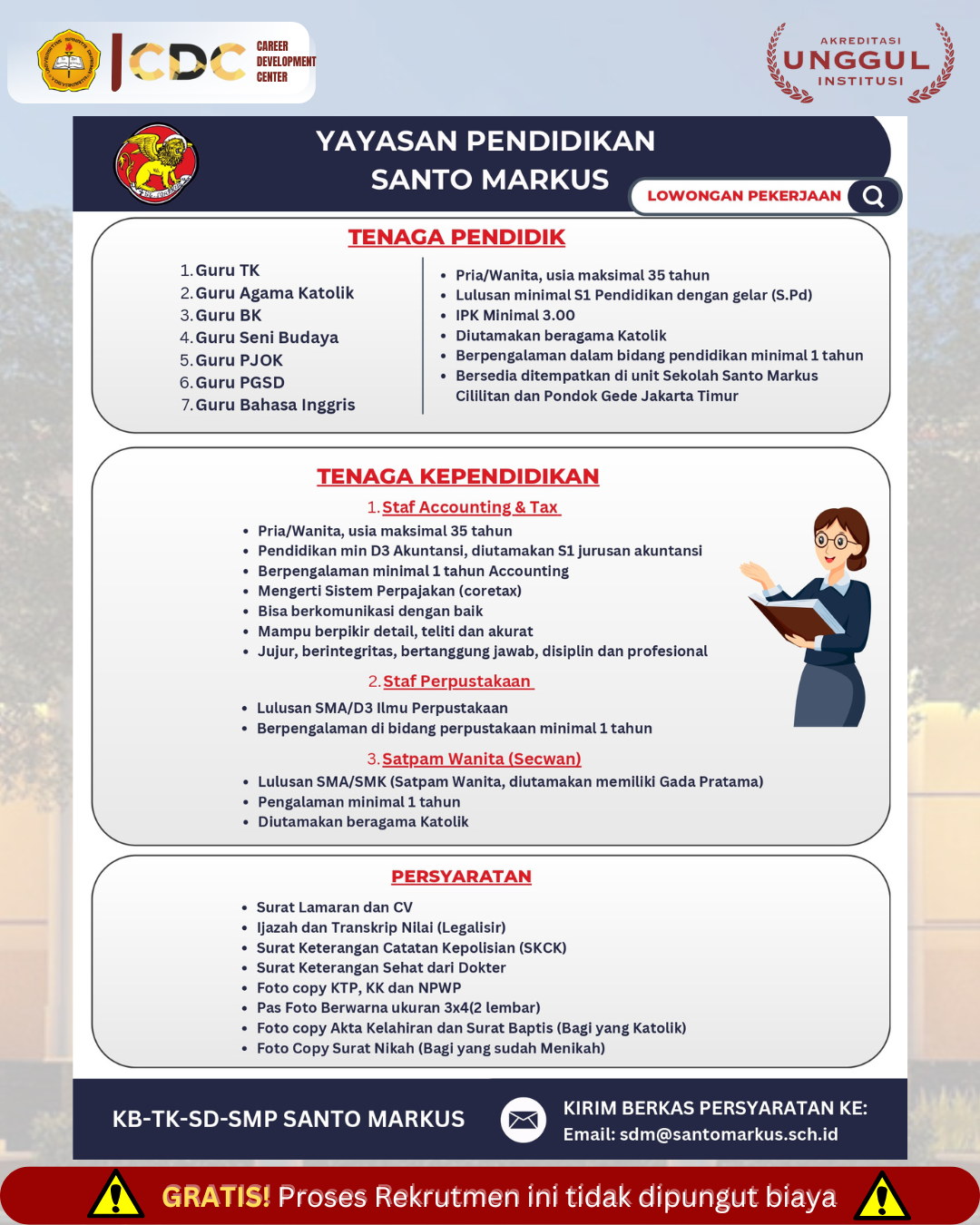 LOWONGAN YAYASAN PENDIDIKAN SANTO MARKUS
