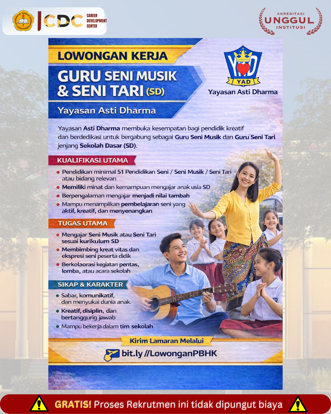 LOWONGAN YAYASAN ASTI DHARMA >> Yayasan Asti Dharma deadline : 30/04/2026