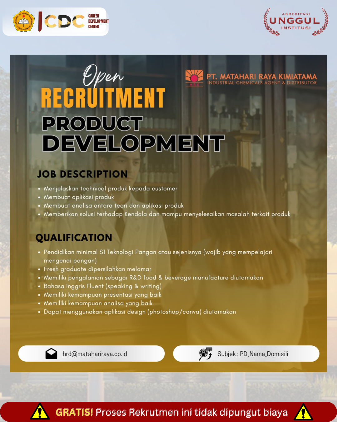 OPEN RECRUITMENT PT. Matahari Raya Kimiatama >> PT. Matahari Raya Kimiatama deadline : 30/04/2026